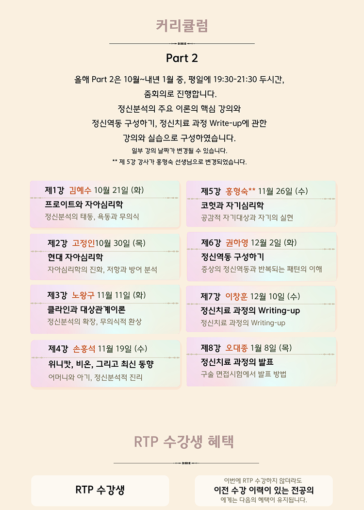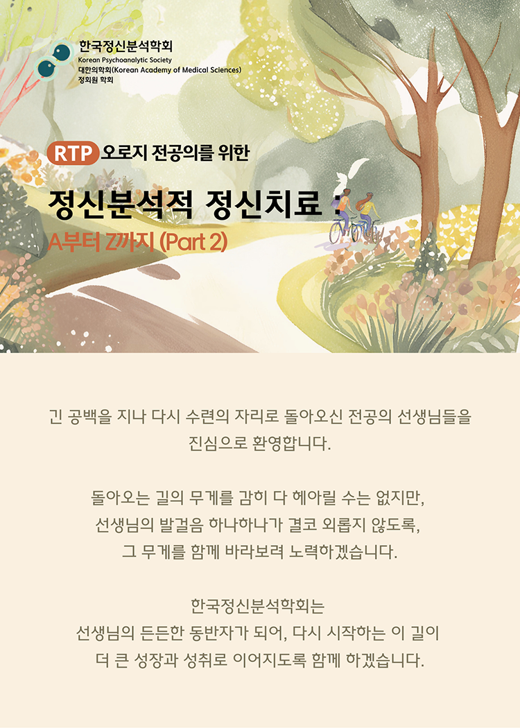 2025년 RTP 오로지 전공의를 위한 정신분석적 정신치료 : A부터 Z까지 (Part 2) ![]() |